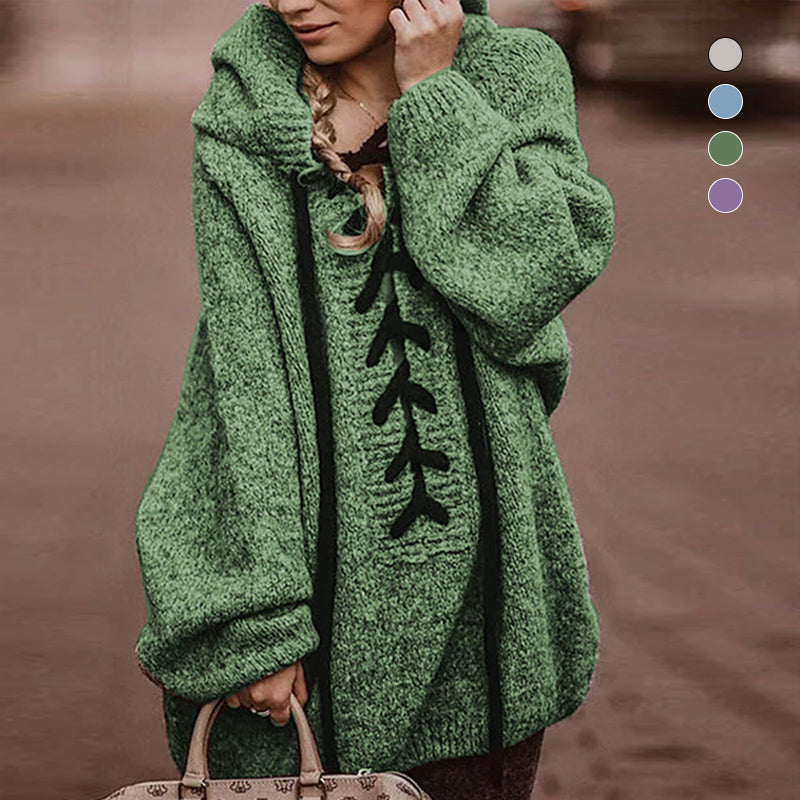Hooded Solid Color Twist Thick Sweater Cardigan
