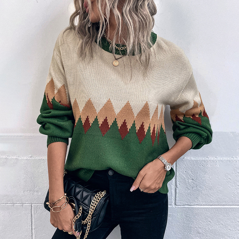 Vintage Turtleneck Long Sleeve Jacquard Sweater